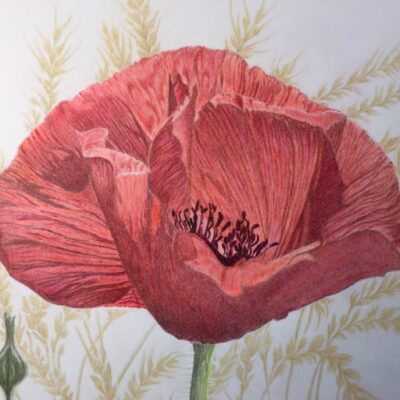 Tuscan poppy/original art by Susan J Sommer June 7, 2022 suesommerfinearts.com $225