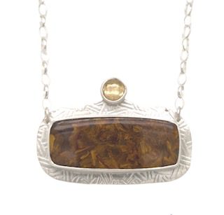 Pietersite Pendant with Rutilated Quartz by Samuel T Huang January 28, 2023 Marin Jeweler's Guild Contact For Pricing