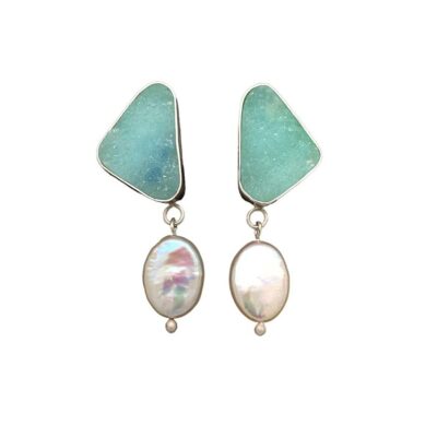 Very rare gem druzy hemimorphite Earrings set with pearls by Samuel T Huang January 28, 2023 Marin Jeweler's Guild Contact For Pricing