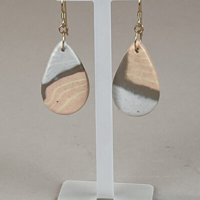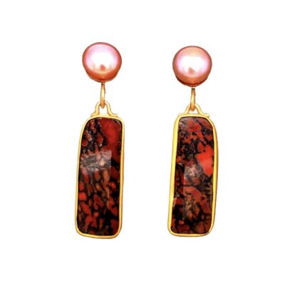 Top Petrified Dinosaur Bone earrings set with pink Tahitian Pearls by Samuel T Huang January 28, 2023 Marin Jeweler's Guild Contact For Pricing