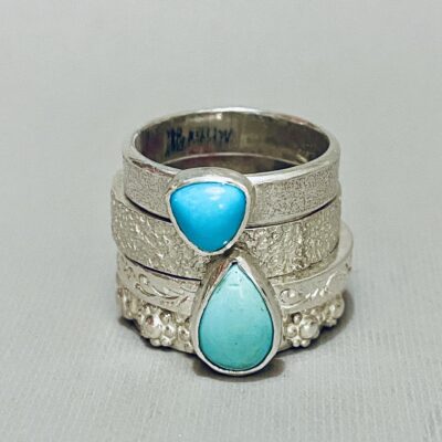 Sterling silver & turquoise stacking rings by Vicki Marinko April 2, 2023 1331 4th St. San Rafael Contact For Pricing