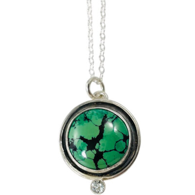 Green turquoise set in sterling silver by Sudha Irwin February 3, 2025 1331 4th Street, San Rafael,CA 94901 Contact For Pricing