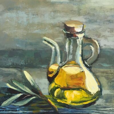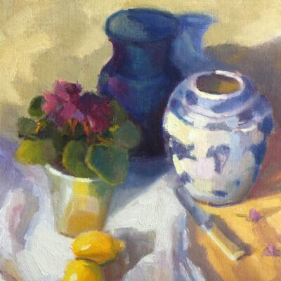 Blue Bottle and Mandarins by Beverly Brown December 12, 2021 My StudioContact For Pricing