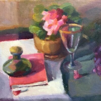 Still Life: camellias and Chardonnay by Eric Von Berg December 12, 2021 My StudioContact For Pricing