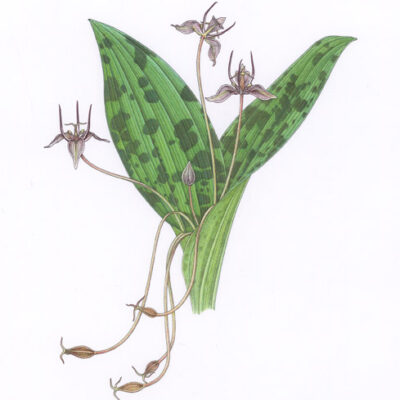Fetid Adder’s-tongue; Slink-Pod (Scoliopus bigelovii) by Kristin Jakob from the Accumulation series [wood tower] by Barry Beach March 23, 2025 Contact For Pricing