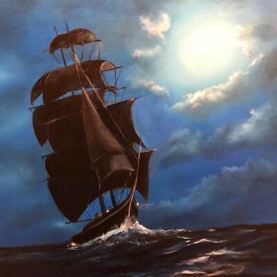 Black Schooner on a Full Moon Night by Barbara Ivy December 12, 2021 My StudioContact For Pricing