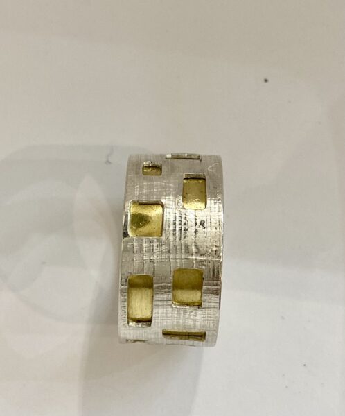 22k & sterling band ring by Vicki Marinko Published: April 7, 2022 (4 years ago) Contact For Pricing CategoryART MEDIUM - 2DART MEDIUM - 3D ARTART MEDIUM - 3D ART / Jewelry Location 1331 4th St. San RafaelSterling silver and 22k gold band ring with cut out squares Send Message 415 ... show phone Your Name * Your Email * Subject * Message * Website Address