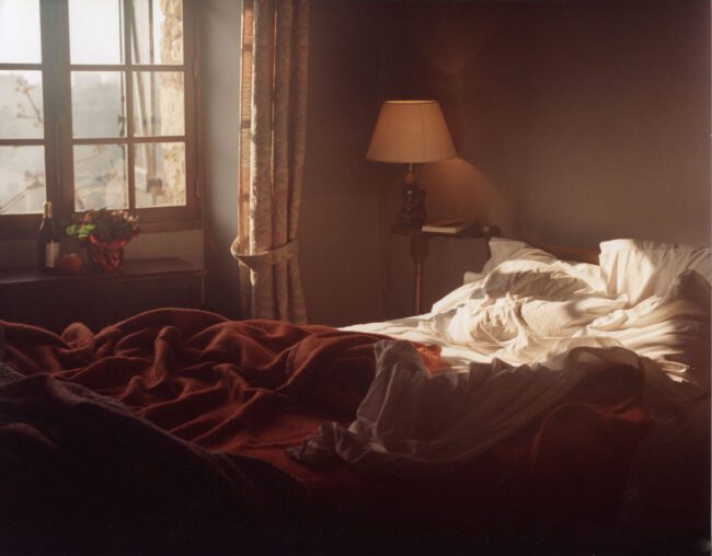When we returned from breakfast to our hotel room, in our favorite Provençal hotel, I immediately noticed the winter light playing across our unmade bed. The thin light streaming in through the window panes and the folds of the bed clothes reminded me instantly of an Old Masters painting. Because of the light and memories, ‘Bed Les Arcs’ is one of my favorite images.