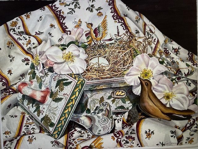 Birdland II by Susie Rosenberg Published: January 28, 2023 (3 years ago) Contact For Pricing CategoryART MEDIUM - 2D / PAINT: WatercolorI love intricate still life. One of a series using bird nests and fabric and flowers. Send Message Your Name * Your Email * Subject * Message * Website Address