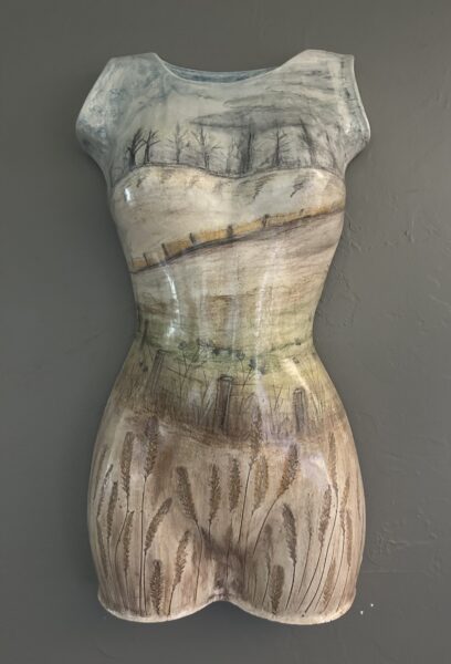 Body work series -Indian summer  captures the lost landscapes that are being turned into new malls, giant houses and captures our changing environment.  Wall hung .