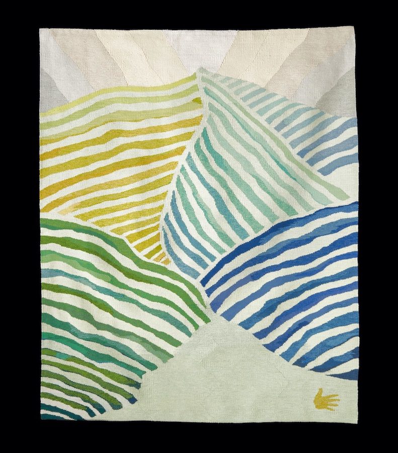 In this tapestry I wanted to consider the hills from which I draw great inspiration. By using a watercolor interpretation, I am able to reflect the way that water, in its elusive forms of ocean, fog, rain, and (hopefully flowing) creeks, is necessary to support the unique features that is so much a part of this region.