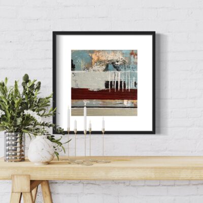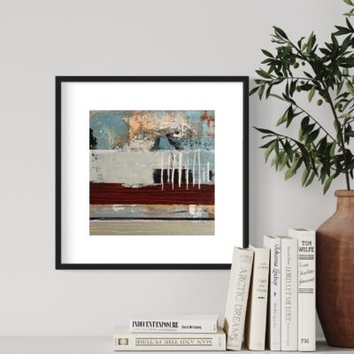 12”x12” acrylic/mixed media on birch plywood, framed with a white matte in a 20”x20” black frame