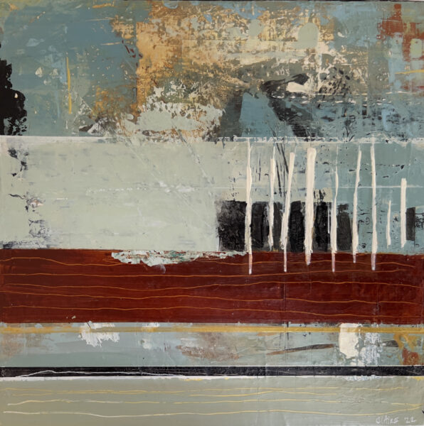 This series was inspired by the ten year period we spent living on our boat in Sausalito. This series expresses the still surface of the water and the slow aging of sun-weathered, chipped paint on old boats and docks. They also reflect the the wind, fog and sea and the uncertainty of life on the water. This series is created with layers of acrylic paint, collage, paint sticks, crayons and pencil that is scraped, grooved, pitted, sanded, removed and re-applied in a process that shows the history of its creation. In this way, these pieces mirror the chaos of nature, serendipity of life and the stillness of time passing.