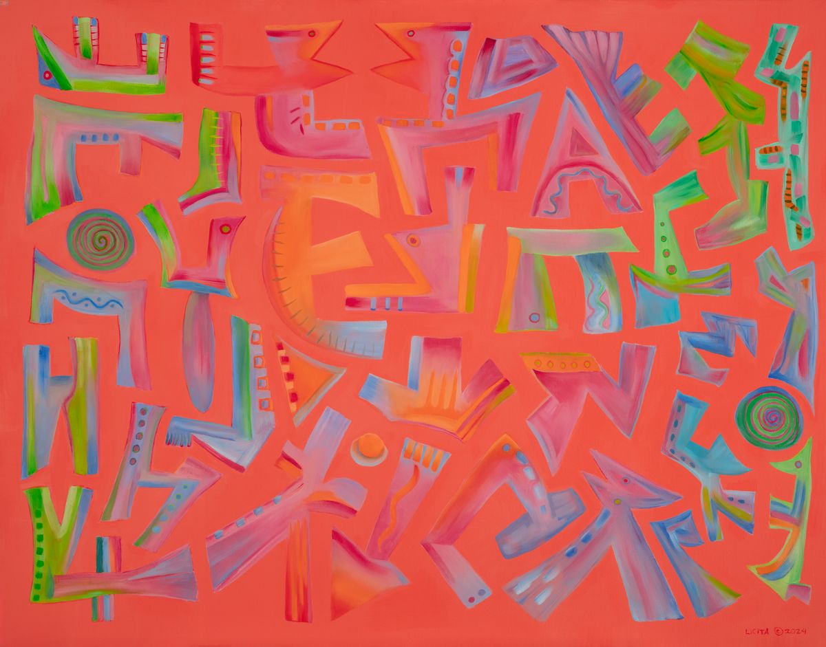 Explosion at a Thingamabob Factory is a 22″x28″ acrylic and oil painting. Color is very important to me and plays a huge part in the creation of my artwork. The shapes and forms in this painting are abstract, but some evoke creatures.