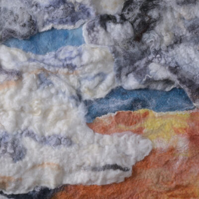 Wet felted merino wool and embellishments.