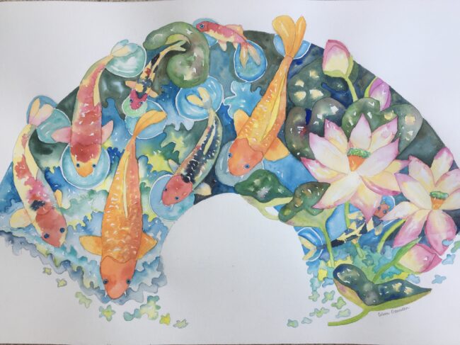 Fan with Koi and Waterlilies by Eileen Ormiston Published: April 11, 2023 (3 years ago) $1,100 CategoryPRICE / SIZE / $1000-$5000ART FOR THE... / BedroomSTYLE / ImpressionistART FOR THE... / Living RoomCOLOR THEME / Multi-ColorsART FOR THE... / OfficeART MEDIUM - 2D / PAINT: WatercolorSUBJECT / WaterscapesOriginal framed watercolor of koi swimming in a pond with waterlilies. Send Message Your Name * Your Email * Subject * Message * Website Address
