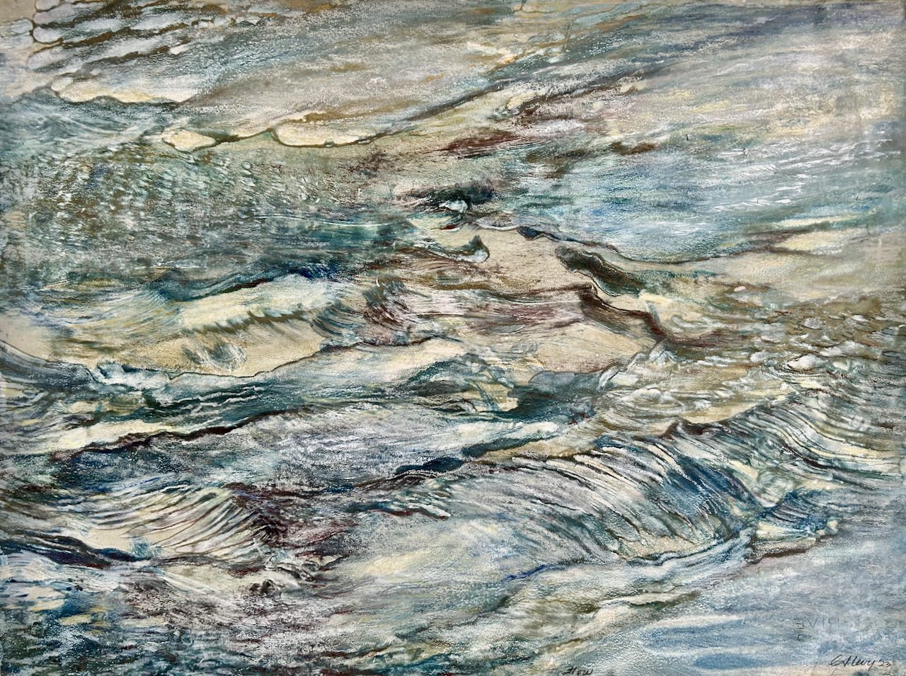 Mixed media: Monotype, colored pencil, oil pastel on rives BFK 22×30