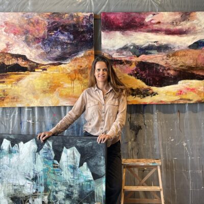 Abstract landscape inspired by the beautiful scenery and colors from Patagonia. This is a view to Lago General Carrera and the glaciers in the back.