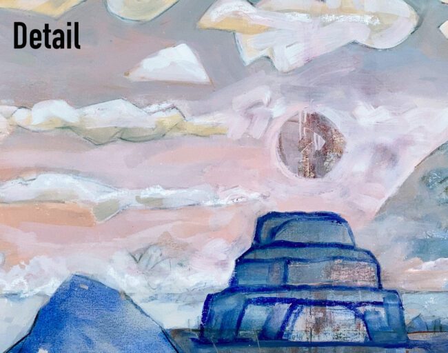 Oil and charcoal on canvas on panel. 48h x 48w inches. No frame required. Signed on left edge.