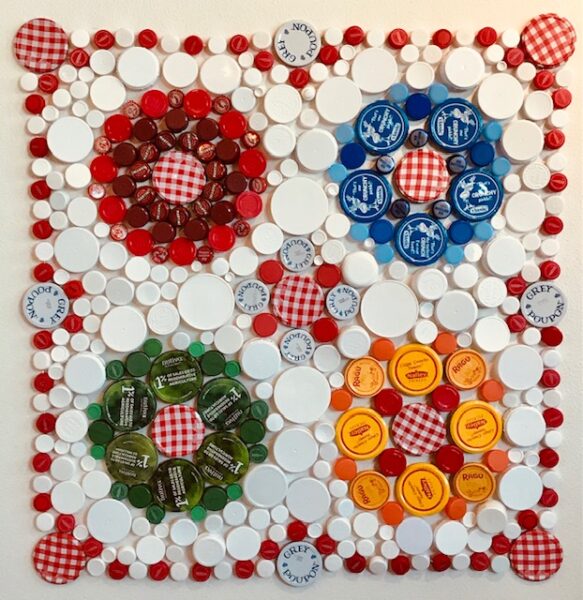 Consists of 4 “flowers” and is a smaller version of “A Novel Nod to Granny’s Quilt”.