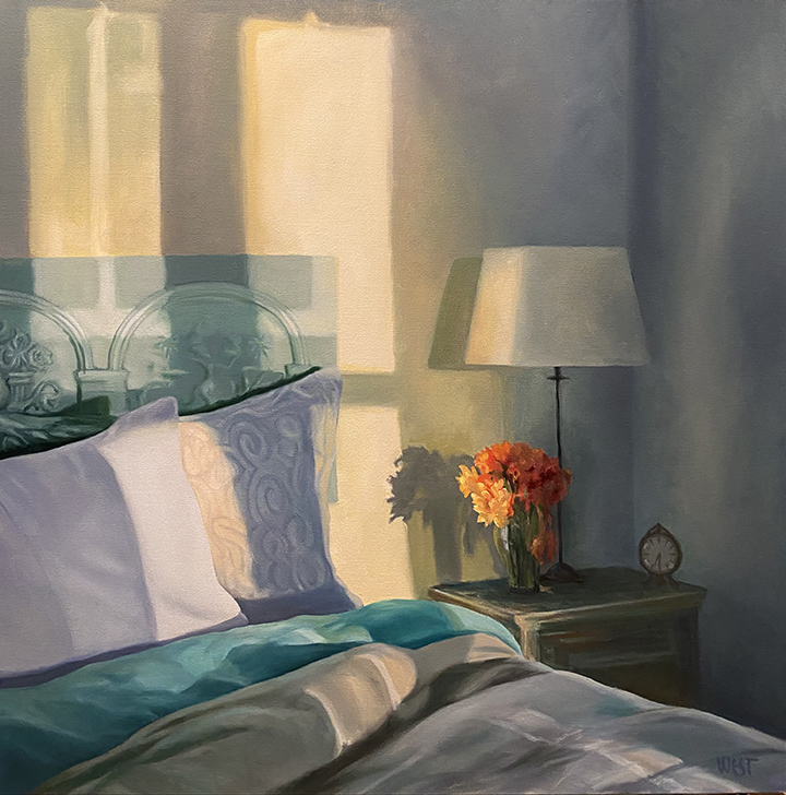 Guest Bedroom by Elaine West Published: February 1, 2022 (4 years ago) Contact For Pricing CategoryART FOR THE... / BedroomART MEDIUM - 2D / PAINT: Oil PaintSTYLE / RealismPRICE / SIZE / SIZE C: Large RoomSUBJECT / Still Life30″ x 30″ Oil on canvas.Late light softly illuminates the corner of a beautiful bedroom Send Message 415 ... show phone Your Name * Your Email * Subject * Message * Website Address