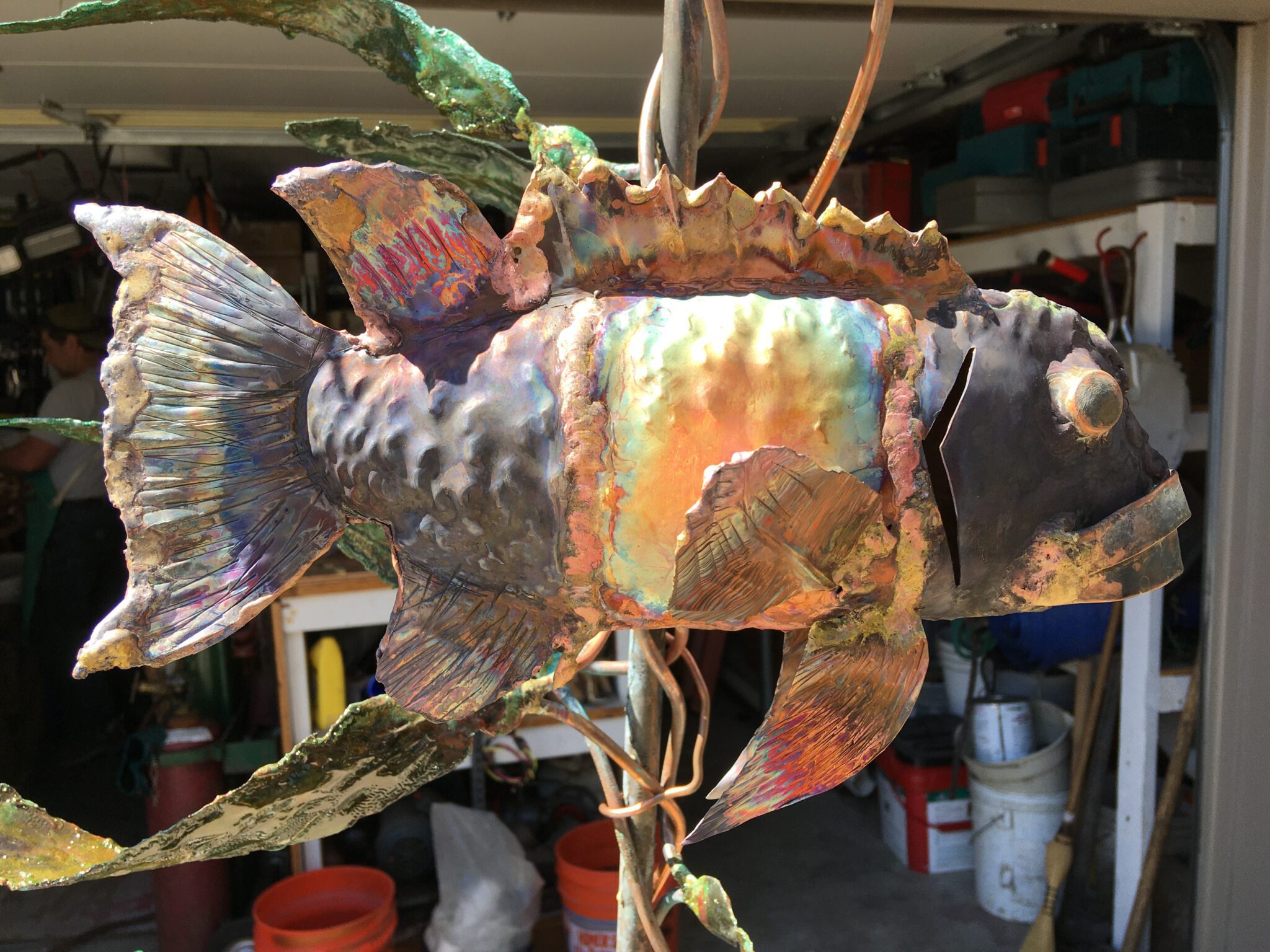 The artistry in the patina. The multicolored displays bring unmatched truthfulness to these spectacular deep sea scenes. Copper, glass and stone. 88”h x 38”d x 70”w