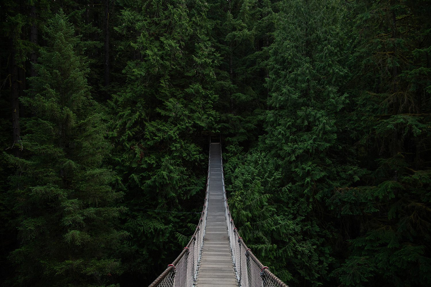 Into the green. Crossing this Pacific Northwest Canyon on a suspension bridge felt like walking into another world.