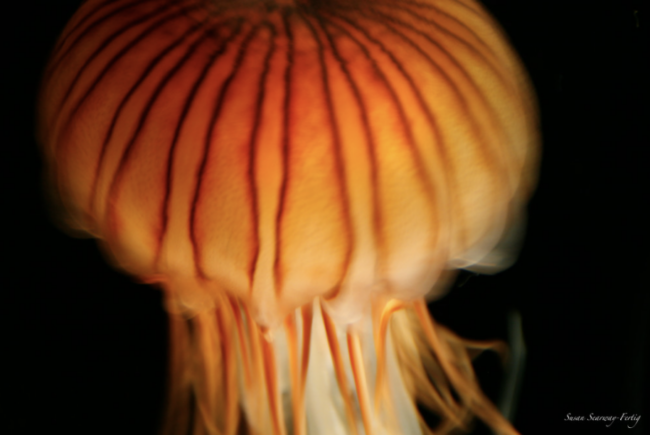 Jellies have always held a special place in my heart. They move so delicately in the water like a dancer, but their tentacles can be very deadly. So their dance is a balance of elegance and danger, Sea Nettle, like the one pictured here, is one of my favorite jelly species.