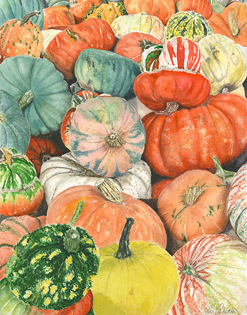Jumbled Pumpkins by Jan Pinkston Published: April 18, 2025 (8 months ago) Contact For Pricing CategoryART FOR THE... / Kitchen/Breakfast NookCOLOR THEME / Multi-ColorsART MEDIUM - 2D / PAINT: WatercolorWatercolor on 300 lb paper. Send Message Your Name * Your Email * Subject * Message * Website Address