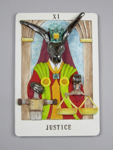 Neither male nor female “Justice†gravely considers the present and looks to the future with the scales of justice in one hand and the sword of justice in the other. In the world of Justice everything seeks balance.