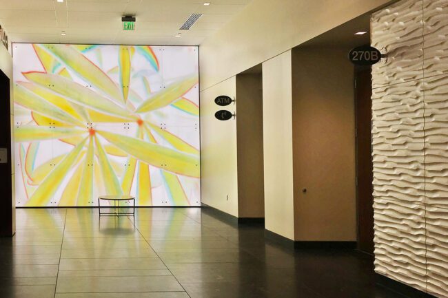 Lupine leaves photographed on Mt Tamalpais. 12′ x 12′ lobby installation at Sutter Hospital Geary Campus, San Francisco. One of 24 images built into the architecture. Worked with HOH Design and Smith Group JJR (architectural firm). We provided customized image files to 3Form for fabrication.