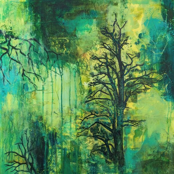 This piece is one of a series I did after visiting the Ancient Bristlecone Pine Forest in the White Mountains near Bishop, California. These incredible trees are the oldest living organism on earth (above ground, that it). Their gnarled and twisted branches are so beautiful to me, and what a testament to resilience!