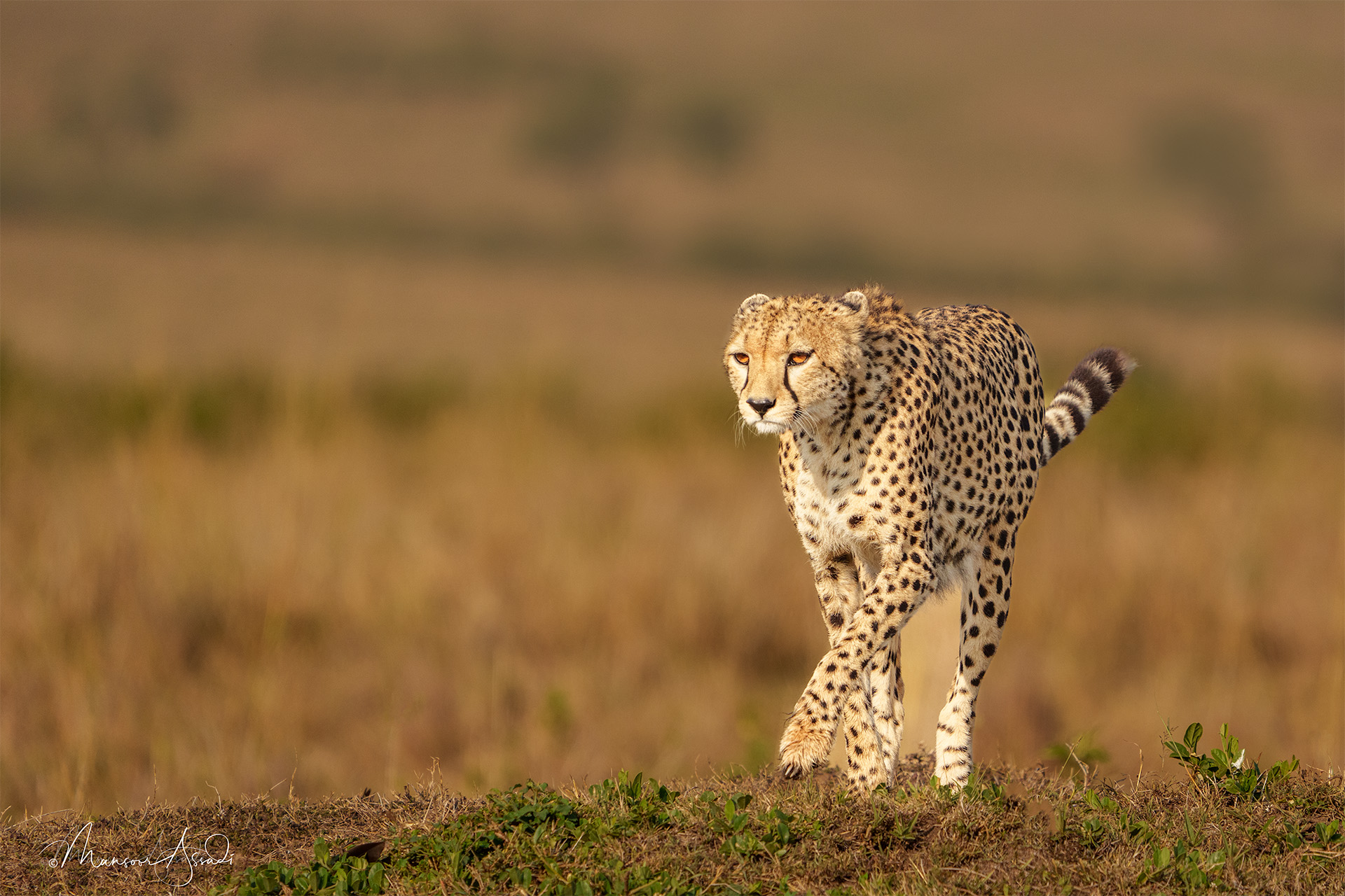 A Pregnant female Cheetah is searching for food in Maasai Mara National Reserve.