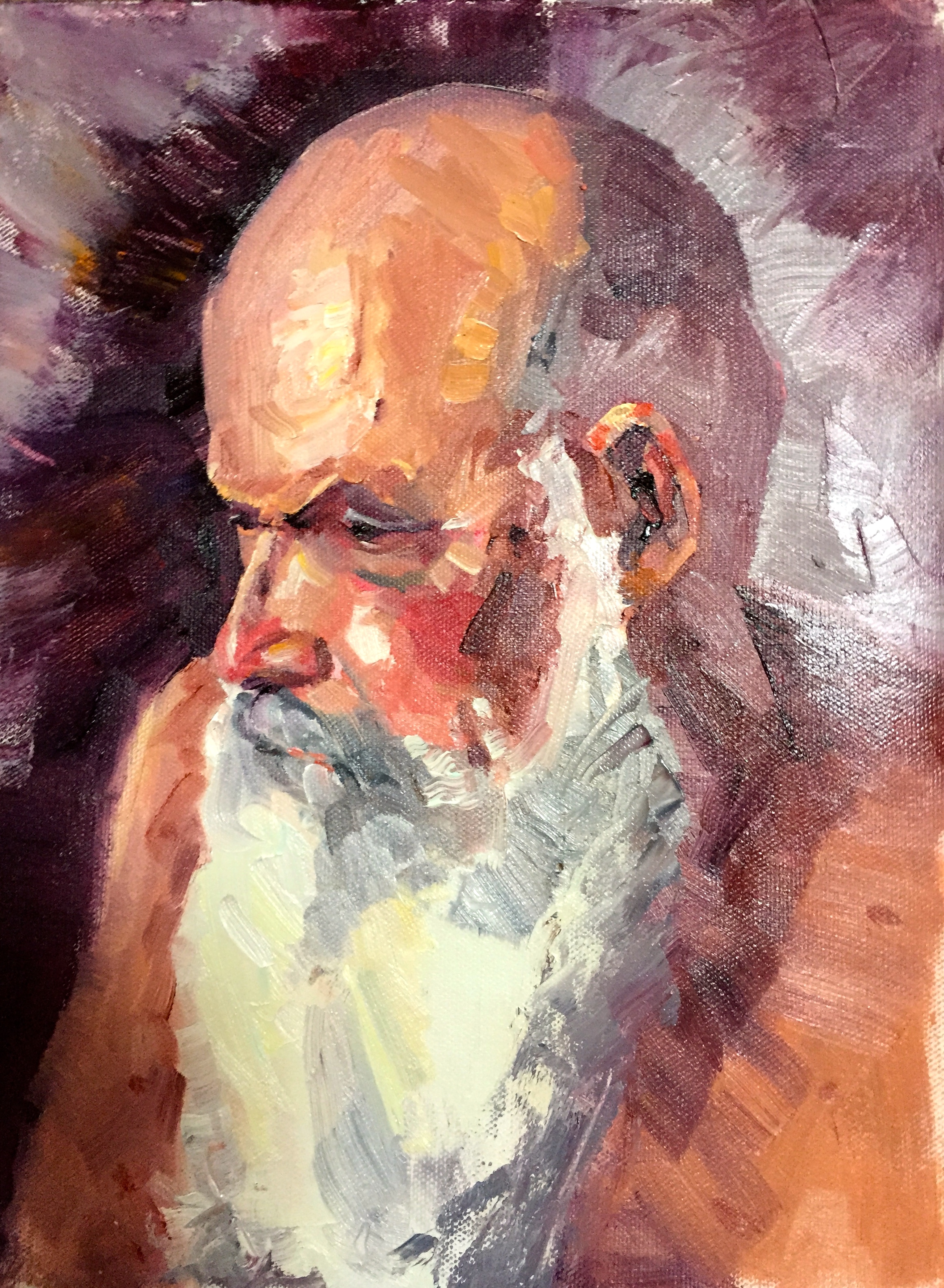 Moses was posing for a full figure painting but I loved the dynamics of his face, So I quickly painted a portrait in the last hour of the sitting.