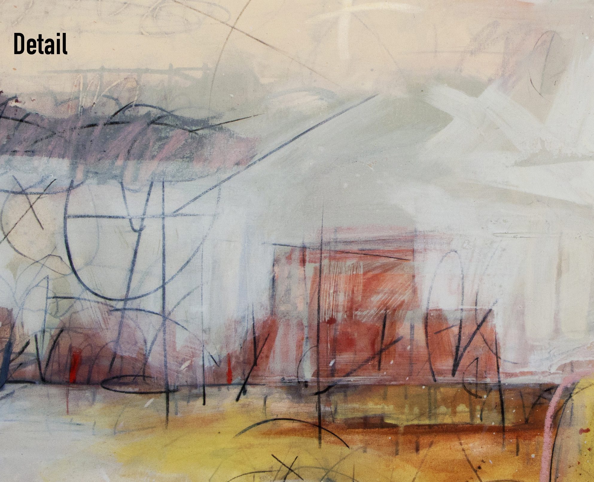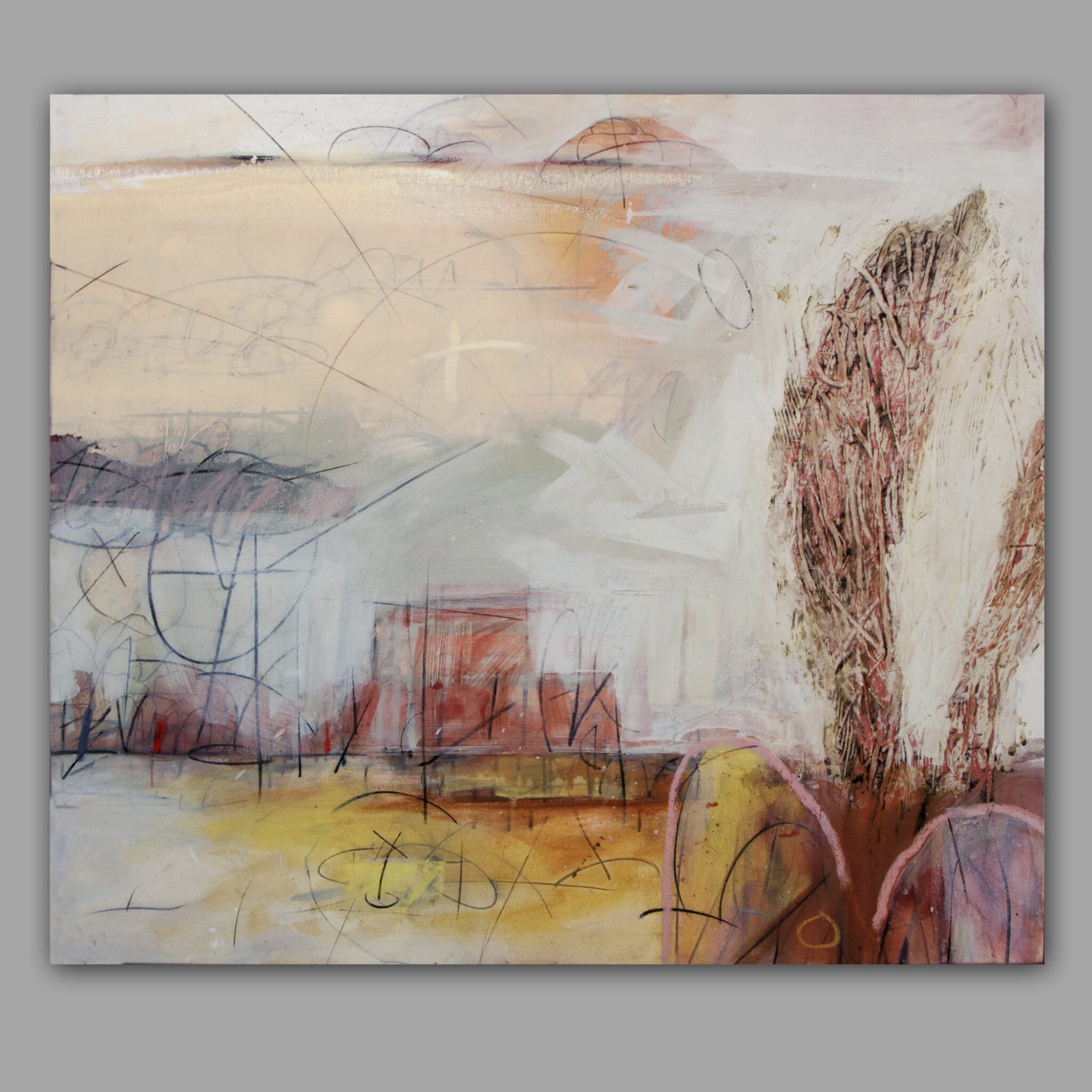Oil and charcoal on canvas on panel. 48h x 48w inches, No frame required. Signed on left edge.