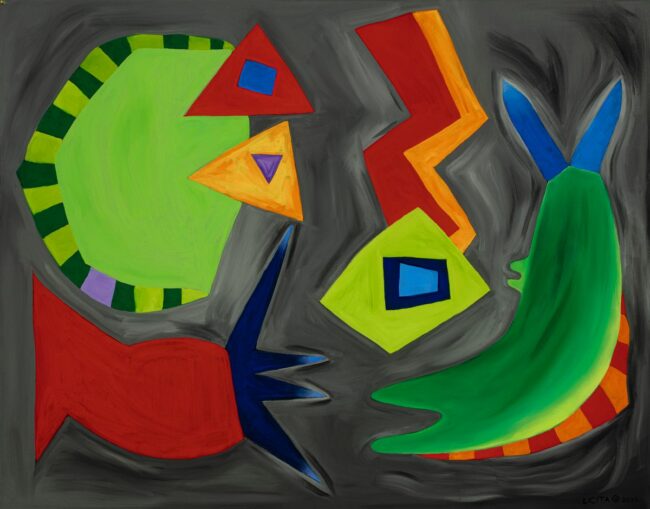 This is a 22″x28″ oil painting on canvas. Bright colors and movement are two of the qualities of this artwork. Completed in 2023, this is the first of my current series.