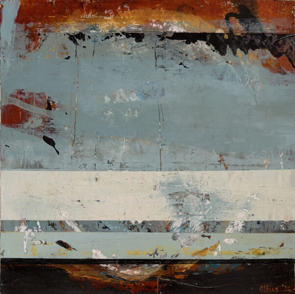 This series was inspired by the ten year period we spent living on our boat in Sausalito. This series expresses the still surface of the water and the slow aging of sun-weathered, chipped paint on old boats and docks. They also reflect the the wind, fog and sea and the uncertainty of life on the water. This series is created with layers of acrylic paint, collage, paint sticks, crayons and pencil that is scraped, grooved, pitted, sanded, removed and re-applied in a process that shows the history of its creation. In this way, these pieces mirror the chaos of nature, serendipity of life and the stillness of time passing