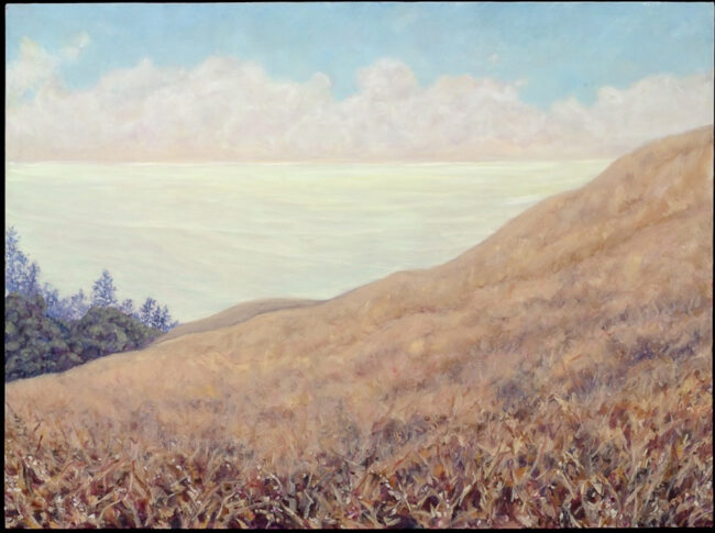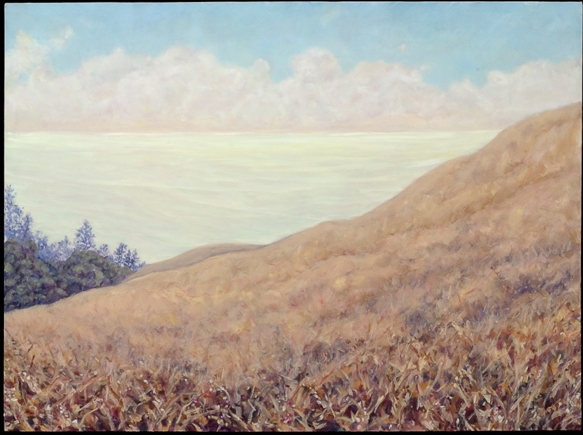 Begun Plein air on Mt. Tamalpais over looking the ocean. I love how the hills just fall into the sea.