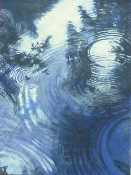 12″ x 12″ Mineral pigments (azurite, turquoise, garnet and oyster shell) and sumi ink on paper on wood panel.