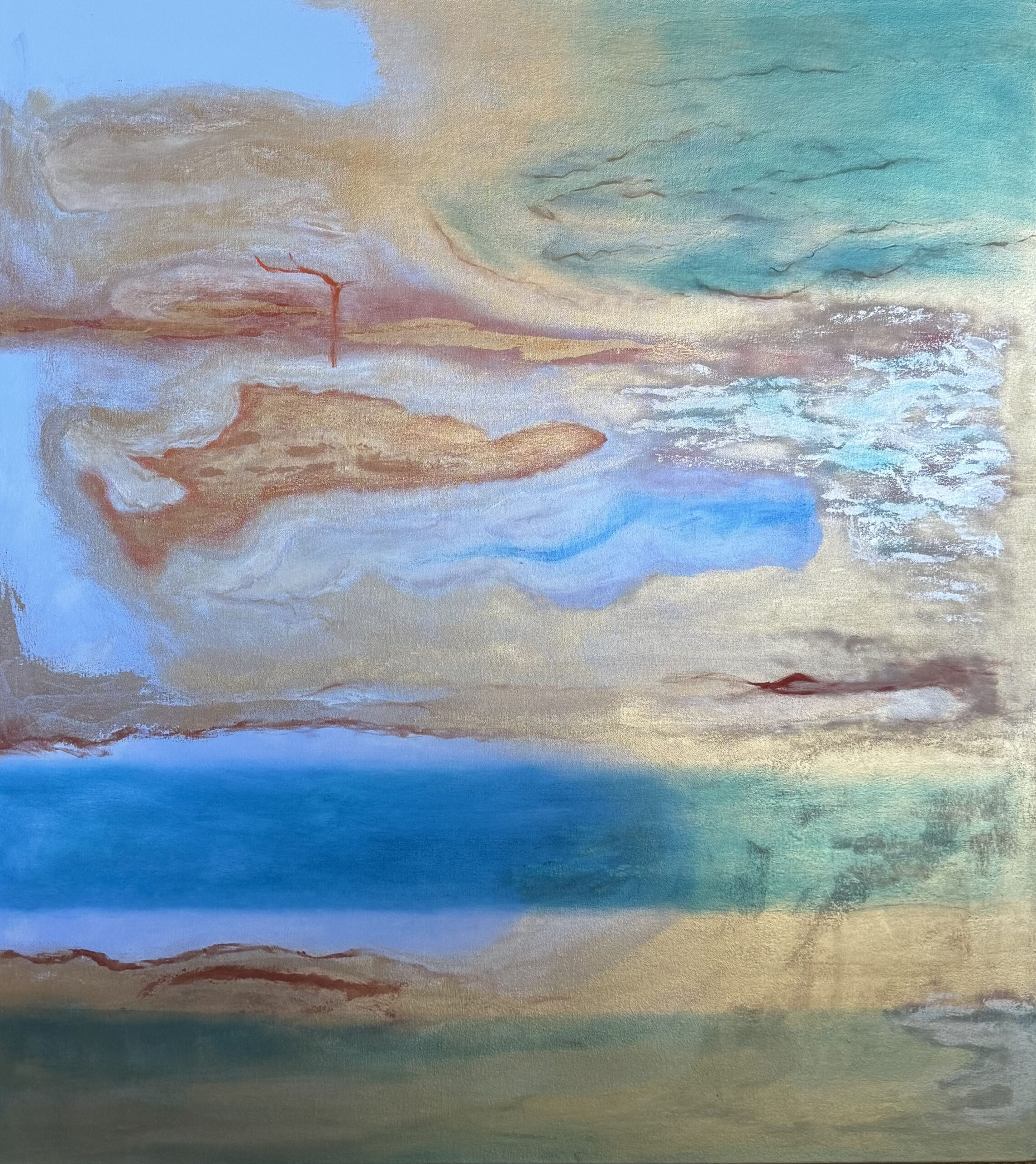 Oil on canvas, 40″ x 36″. “Seaside Symphony” is a swirling, joyous moment of carefree being. After all, everyone needs nature’s renewal…