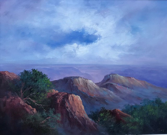 17.5″ x 21.5″ inches Framed in a simple white frame Oil on Canvas. What a beautiful way to begin the day.