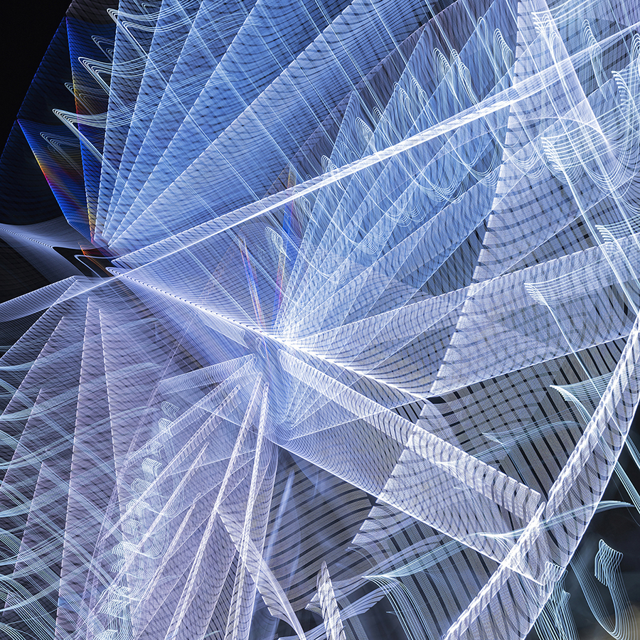 “SKYSTAR” is an abstract photograph created in-camera through a combination of artificial light, long exposure, motion, and photographic techniques known as light painting. This approach has been a key part of my creative process for years, evolving through methods like capturing images from the passenger seat of a moving vehicle at night. Each light painting is unique, a spontaneous moment that can never be fully replicated.
