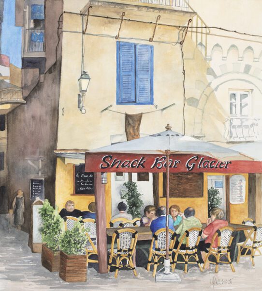 During a hot summer day, in the South of France, people are enjoying an ice cream at the “Snack Bar Glacier”