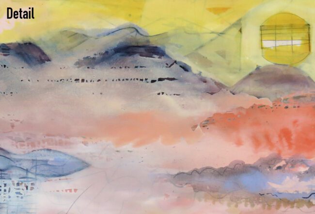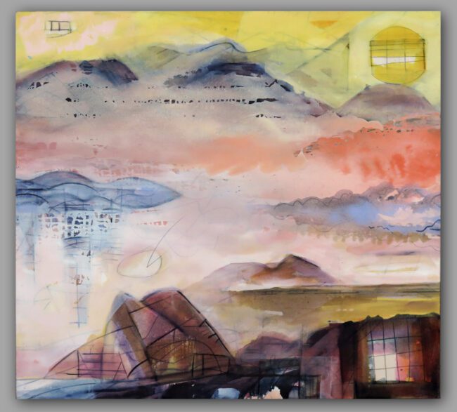 Oil and charcoal on canvas on panel. 44h x 48w inches. No frame required. Signed on left edge.