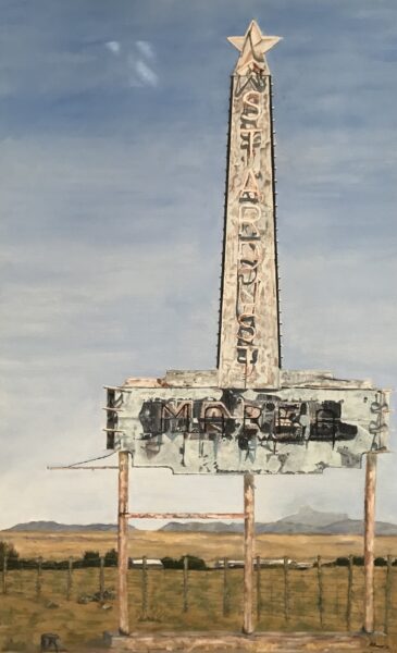 Stardust Motel – Marfa, TX by Bob Amos Published: February 6, 2023 (3 years ago) $2,450 CategoryPRICE / SIZE / $1000-$5000SUBJECT / LandscapesCOLOR THEME / Multi-ColorsART MEDIUM - 2D / PAINT: Oil PaintSTYLE / Realism Location at StudioStardust Motel Sign – Marfa, TXOil on Canvas Send Message 415 ... show phone Your Name * Your Email * Subject * Message * Website Address