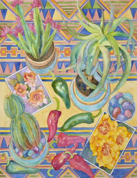 Still Life with Cactus and Navajo Blanket by Eileen Ormiston Published: December 12, 2021 (4 years ago) Contact For Pricing CategorySUBJECT / Still Life Location My StudioOriginal framed watercolor of cactus on a Navajo blanket Send Message Ref ... show phone Your Name * Your Email * Subject * Message * Website Address