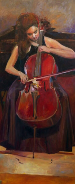 The Cellist III by Kathleen Lack Published: December 12, 2021 (4 years ago) Contact For Pricing CategorySUBJECT / Portraits Location My StudioOil 38″ x 58″ – Cellist in formal attire playing the cello. Send Message Ref ... show phone Your Name * Your Email * Subject * Message * Website Address