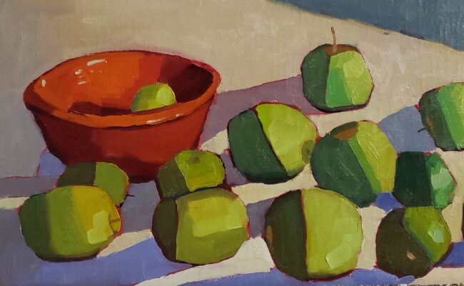 Ten Apples, Two Limes, and one Apple hiding in a bowl. The introvert prefers to view the party at a distance