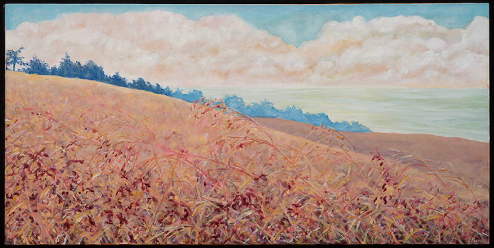 Begun plein air in Mendocino at what was an old ranch with beautiful rolling hills down towards the ocean.