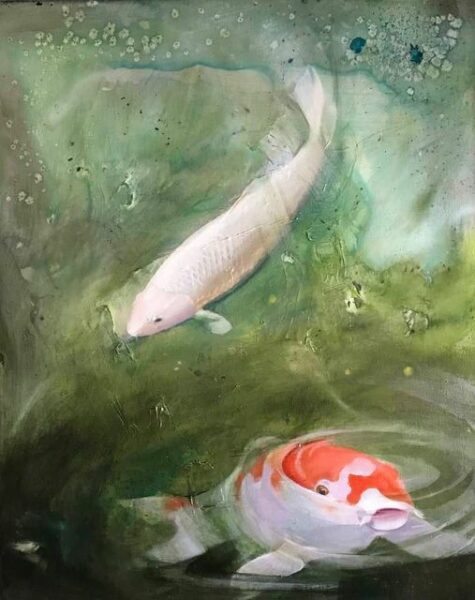 Tobi Koi by Bonnie Hofkin Published: November 18, 2023 (2 years ago) $500 CategoryPRICE / SIZE / $ 1-$500SUBJECT / Animals & PetsART FOR THE... / Entertainment RoomART FOR THE... / Living RoomCOLOR THEME / Multi-ColorsART FOR THE... / OfficeART MEDIUM - 2D / PAINT: Oil PaintSTYLE / Realism16″w x 20″h oil painting on canvas of Koi fish. Send Message 415 ... show phone Your Name * Your Email * Subject * Message * Website Address